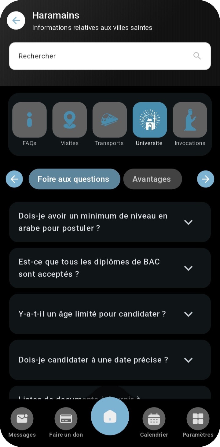 « Université » pour découvrir notre FAQ ainsi que les avantages en rapport avec l’Université de Médine.